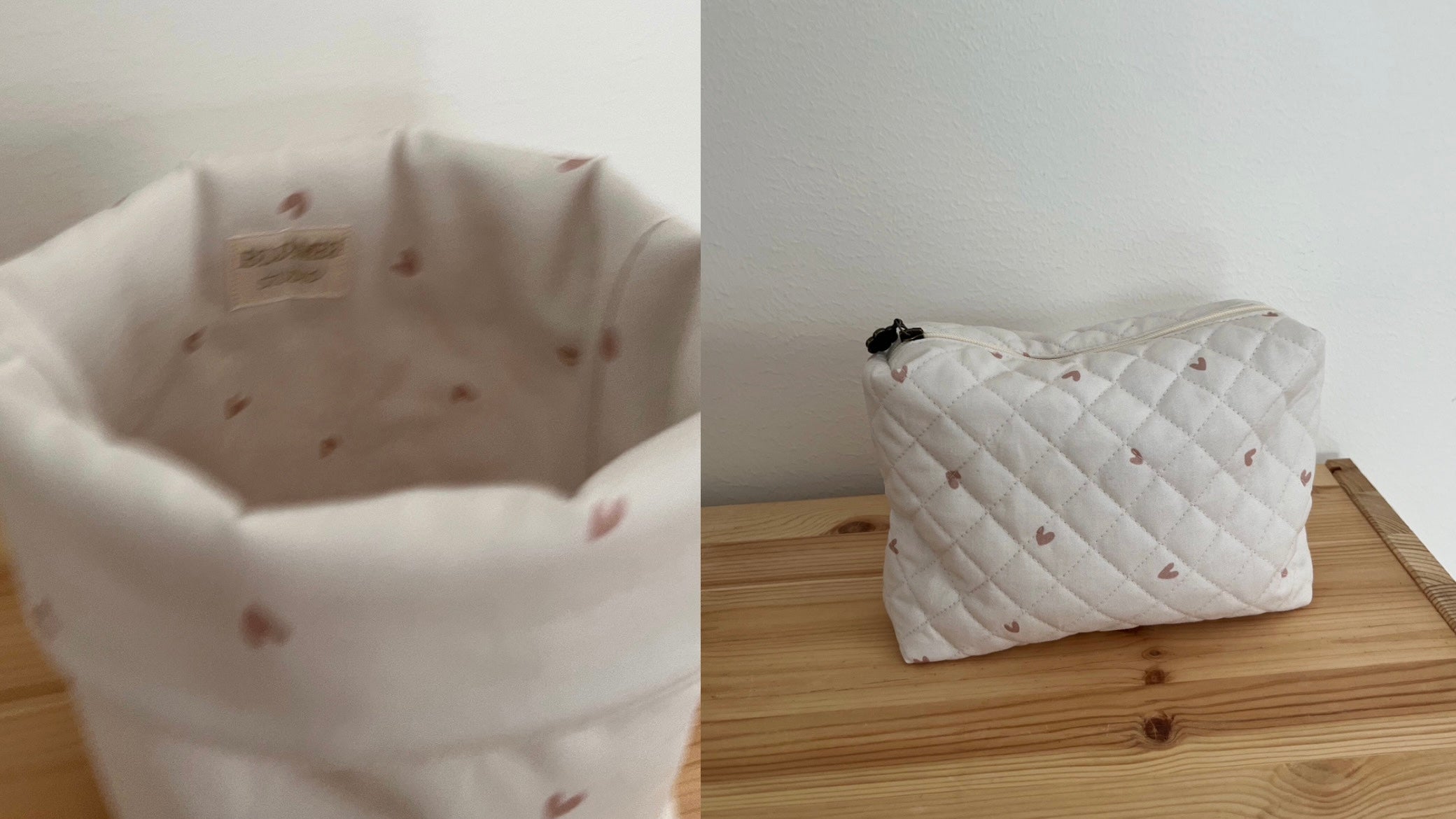 Quiltad rosa rutig necessär