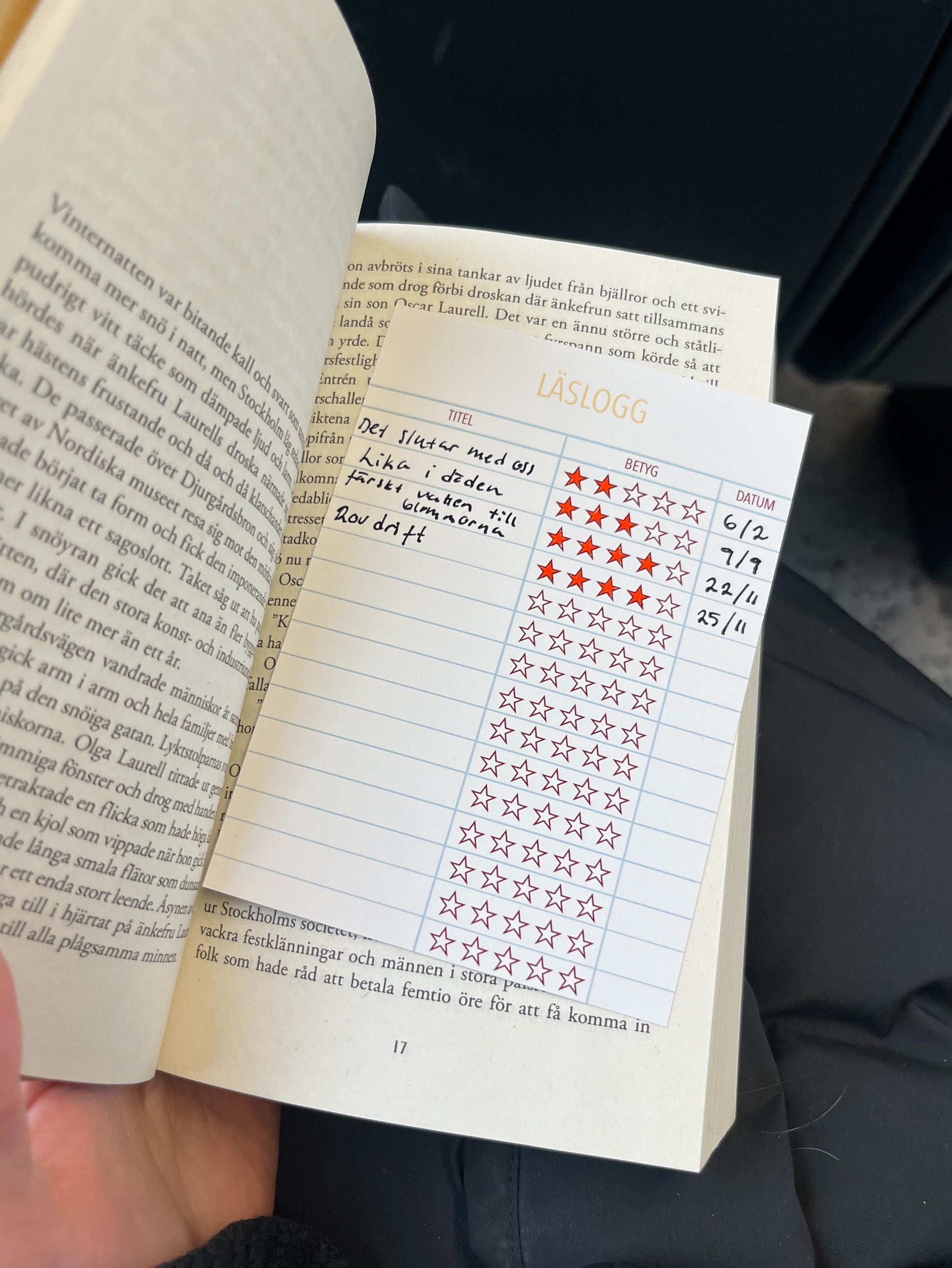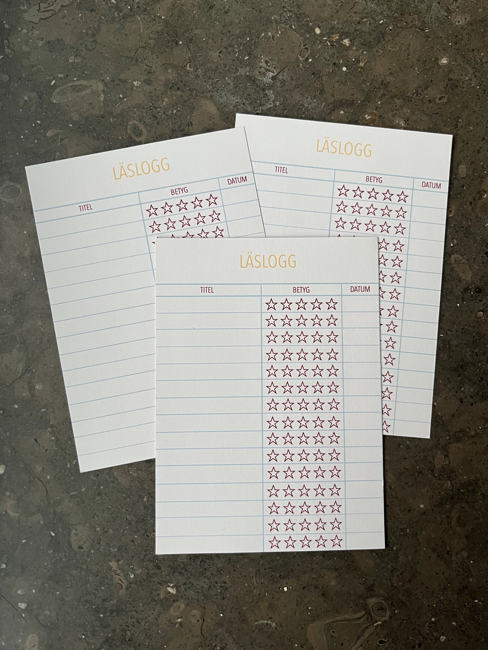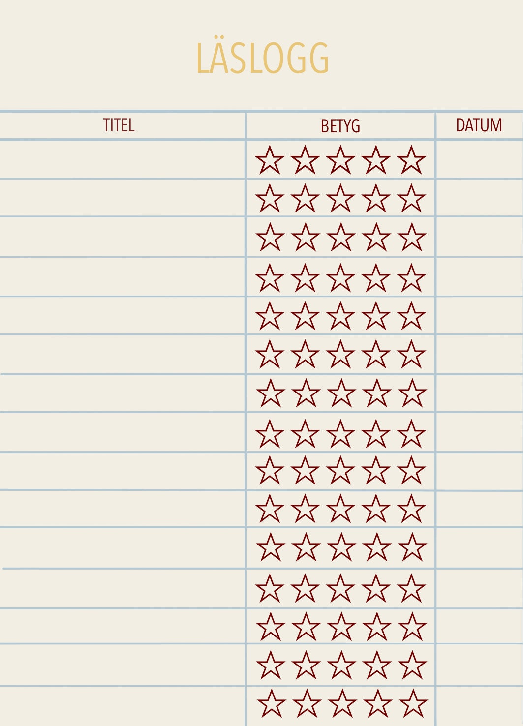 Litet läsloggskort i retrostil att fylla i och betygsätta böckerna man läst. Fungerar även att använda som bokmärke.