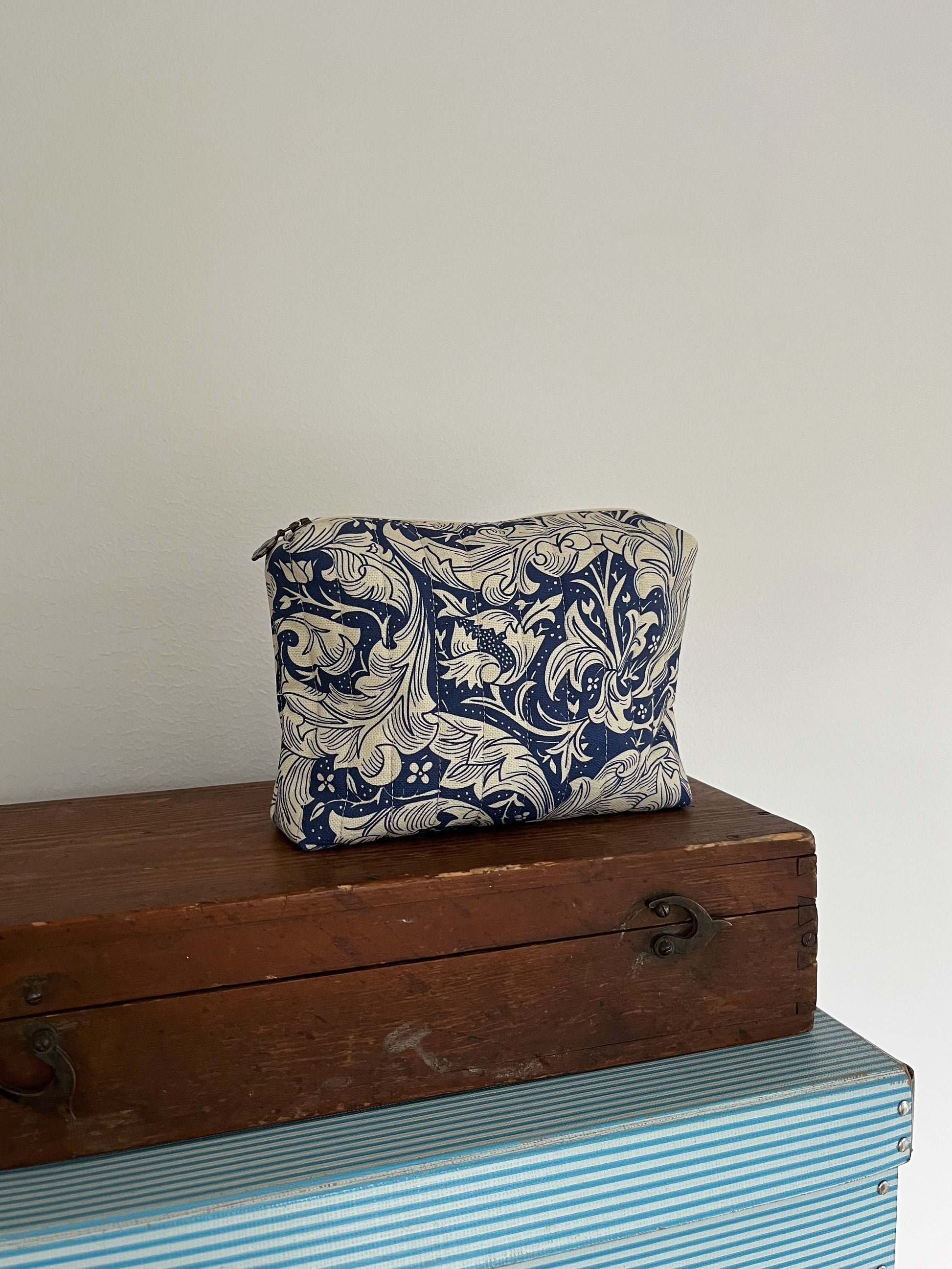 Denna charmiga necessär är tillverkad av vackert blommigt art and crafts inspirerat tyg. Den quiltade designen ger både mjukhet och struktur, perfekt för att organisera allt från smink och hudvård till små vardagsprylar. Oavsett om du är hemma eller på resande fot är den här necessären en stilsäker och praktisk följeslagare. Finns i flera storlekar för att passa just dina behov.