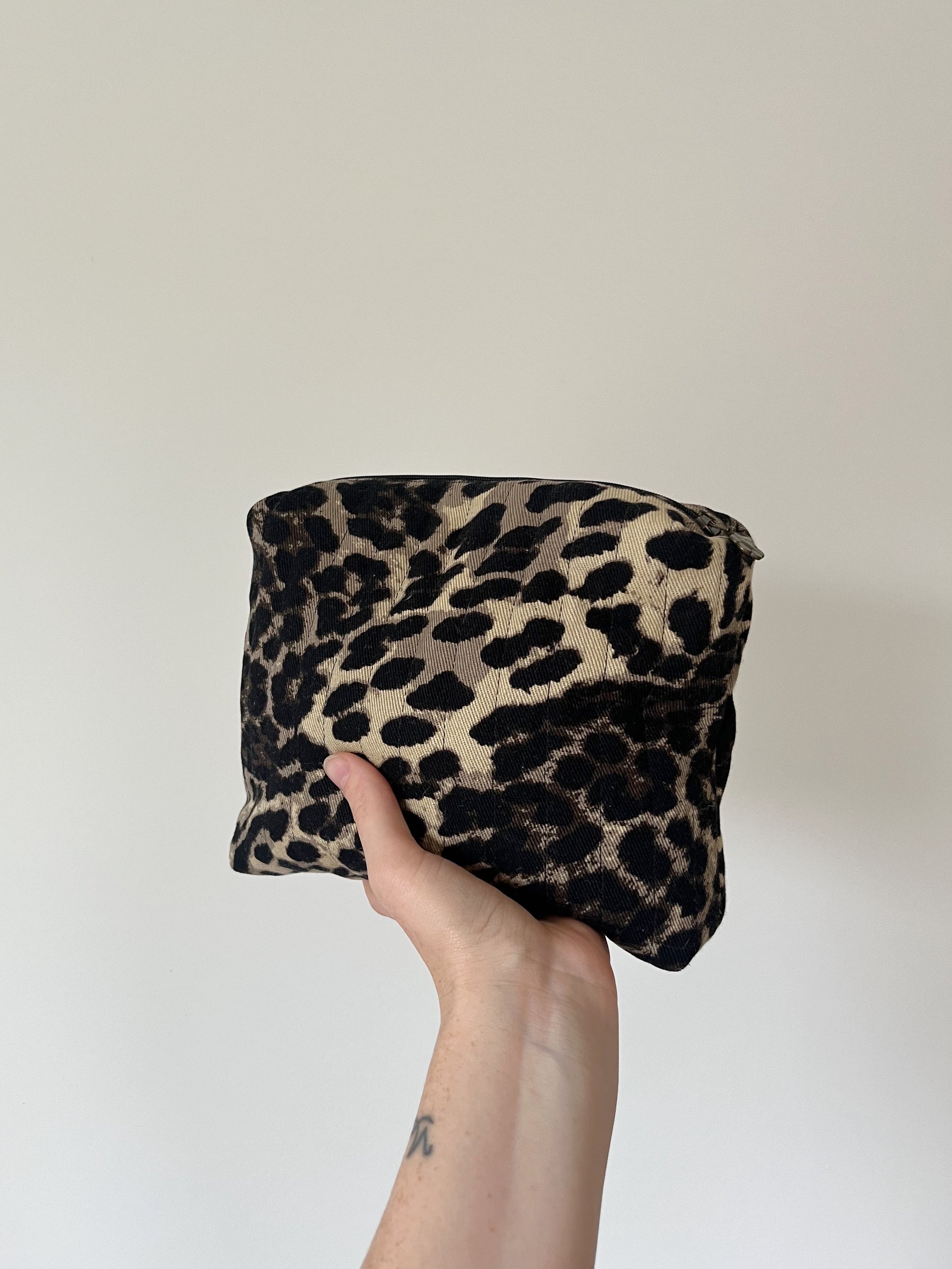 Handgjord quiltad necessär tillverkad av fint och tjockt leopardtyg. Den quiltade designen ger både mjukhet och struktur, perfekt för att organisera allt från smink och hudvård men är även ett populärt val till skötväskan för att förvara blöjor mm. Oavsett om du är hemma eller på resande fot är den här necessären en stilsäker och praktisk följeslagare. Finns i två storlekar - mellan och stor.