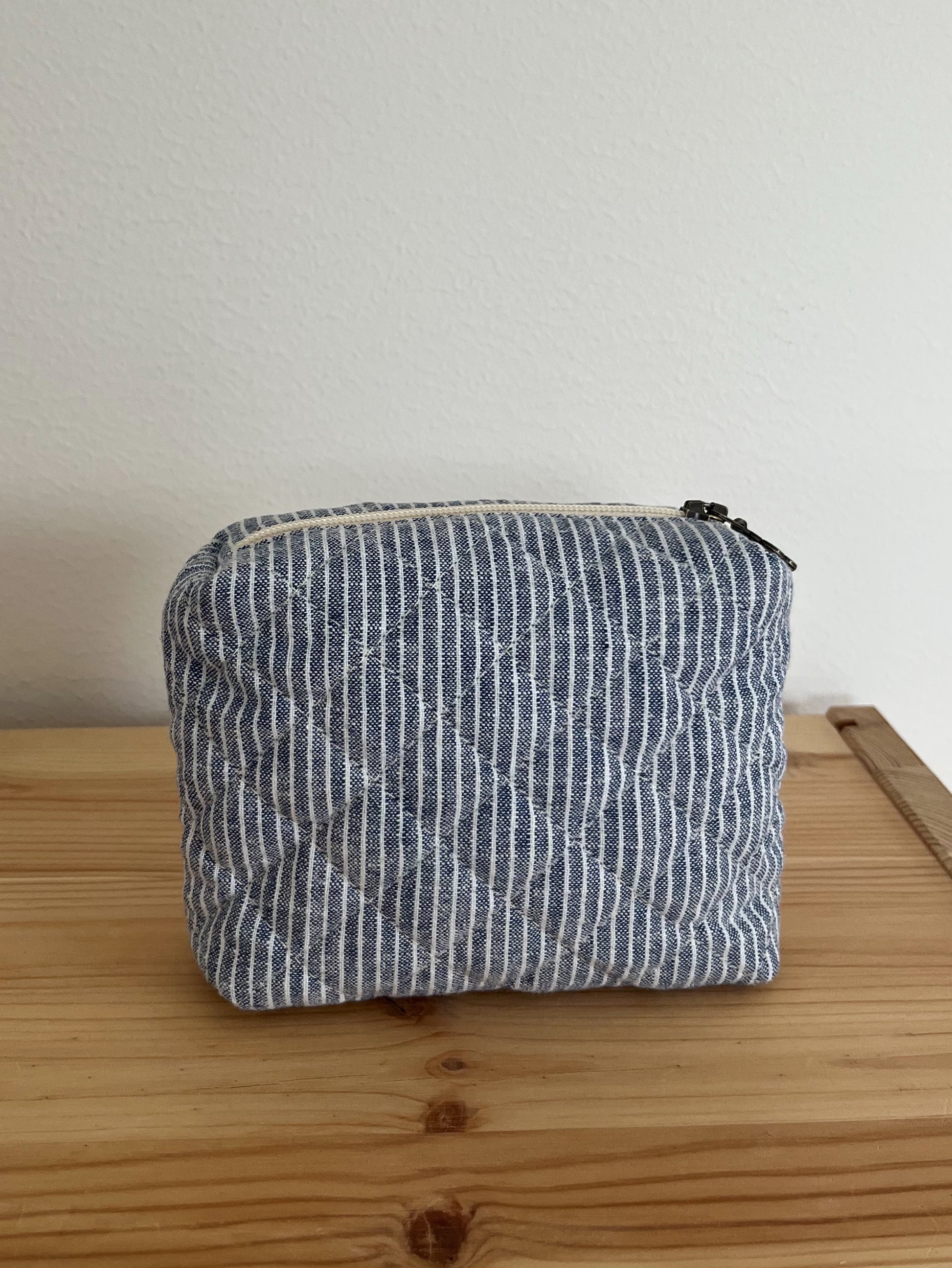Denna charmiga necessär är tillverkad av vackert randigt bomulls/linne tyg. Den quiltade designen ger både mjukhet och struktur, perfekt för att organisera allt från smink och hudvård till små vardagsprylar. Oavsett om du är hemma eller på resande fot är den här necessären en stilsäker och praktisk följeslagare. Finns i flera storlekar för att passa just dina behov.